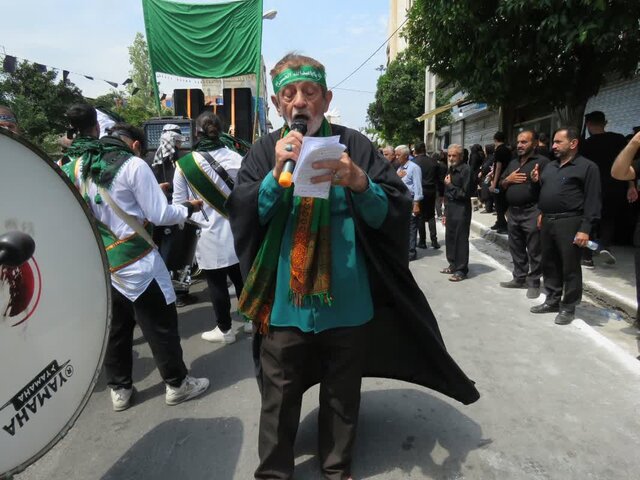 پیرمردی با کمر خمیده و یک پیراهن بلند مشکی حدود ۹۰ ساله ، سیستم صوتی دسته عزاداری را هدایت می‌کرد و می‌خواست نشان دهد که تا پای جان برای اهل بیت و امام حسین (ع) قدم برمی‌دارد.