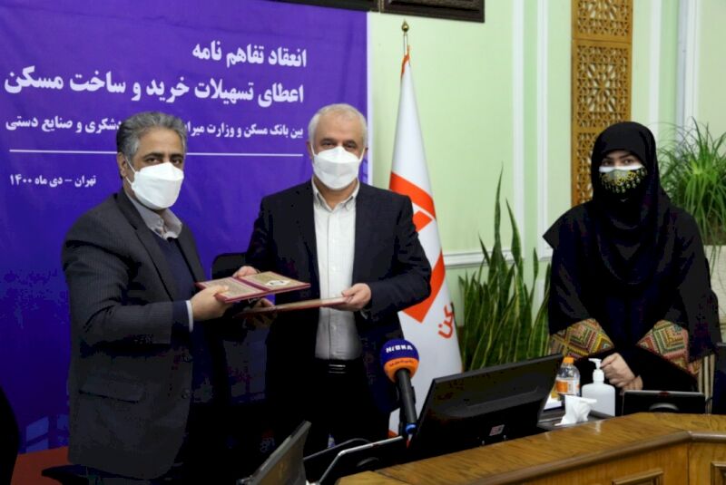 P>به‌گزارش عصر یکشنبه گروه فرهنگی ایرنا از میراث‌آریا، در این مراسم، تفاهم‌نامه اعطای تسهیلات خرید یا ساخت مسکن برای ۲ هزار نفر از هنرمندان، استادکاران و فعالان حوزه صنایع‌دستی به امضای سعید اوحدی معاون توسعه مدیریت وزارت میراث‌فرهنگی، گردشگری و صنایع دستی، پویا محمودیان معاون صنایع‌دستی این وزارتخانه و محمود شایان مدیرعامل بانک مسکن، رسید.
